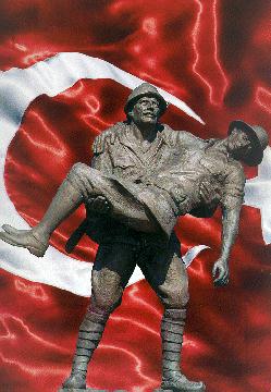 "THOSE HEROES THAT SHED THEIR BLOOD AND LOST THEIR LIVES... YOU ARE NOW LYING IN THE SOIL OF A FRIENDLY COUNTRY THEREFORE REST IN PEACE. THERE IS NO DIFFERENCE BETWEEN THE JOHNNIES AND THE MEHMET'S TO US WHERE THEY LIE SIDE BY SIDE HERE IN THIS COUNTRY OF OURS... YOU, THE MOTHERS, WHO SENT THEIR SONS FROM FAR AWAY COUNTRIES WIPE AWAY YOUR TEARS; YOUR SONS ARE NOW LYING IN OUR BOSOM AND ARE IN PEACE. AFTER HAVING LOST THEIR LIVES ON THIS LAND THEY HAVE BECOME OUR SONS AS WELL..." M.KEMAL ATATURK, 1935. |